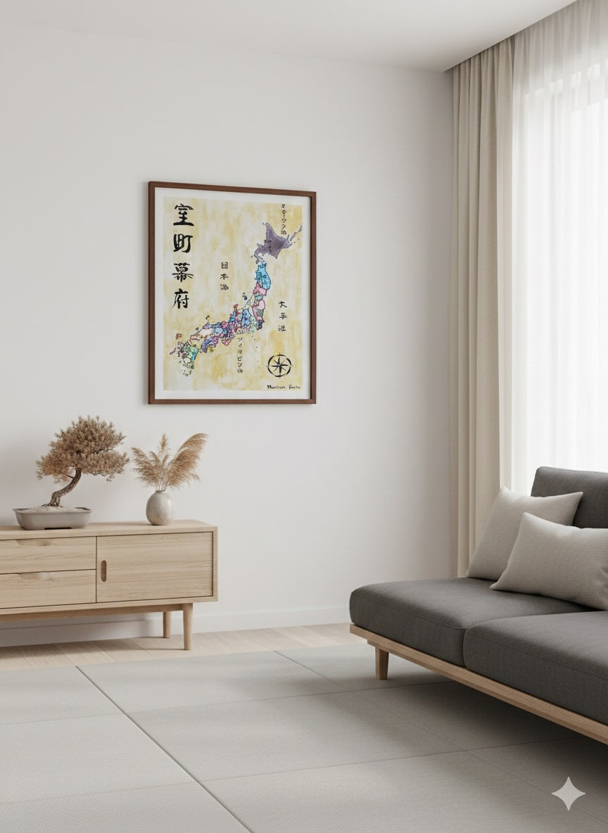 Stylistically, the composition draws upon archival aesthetics while remaining legible to a modern audience. Borders and tonal contrasts are structured to convey political fragmentation without imposing later Tokugawa-era unity or modern prefectural divisions. No anachronistic boundaries are introduced.